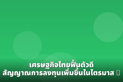 สำนักงานสถิติแห่งชาติรายงานว่าเศรษฐกิจไทยในไตรมาสที่ 3 ของปีนี้มีการฟื้นตัวอย่างต่อเนื่อง โดยเฉพาะในด้านการลงทุนภาคเอกชนที่เพิ่มสูงขึ้นอย่างมีนัยสำคัญ สะท้อนถึงความเชื่อมั่นของนักลงทุนทั้งในและต่างประ...